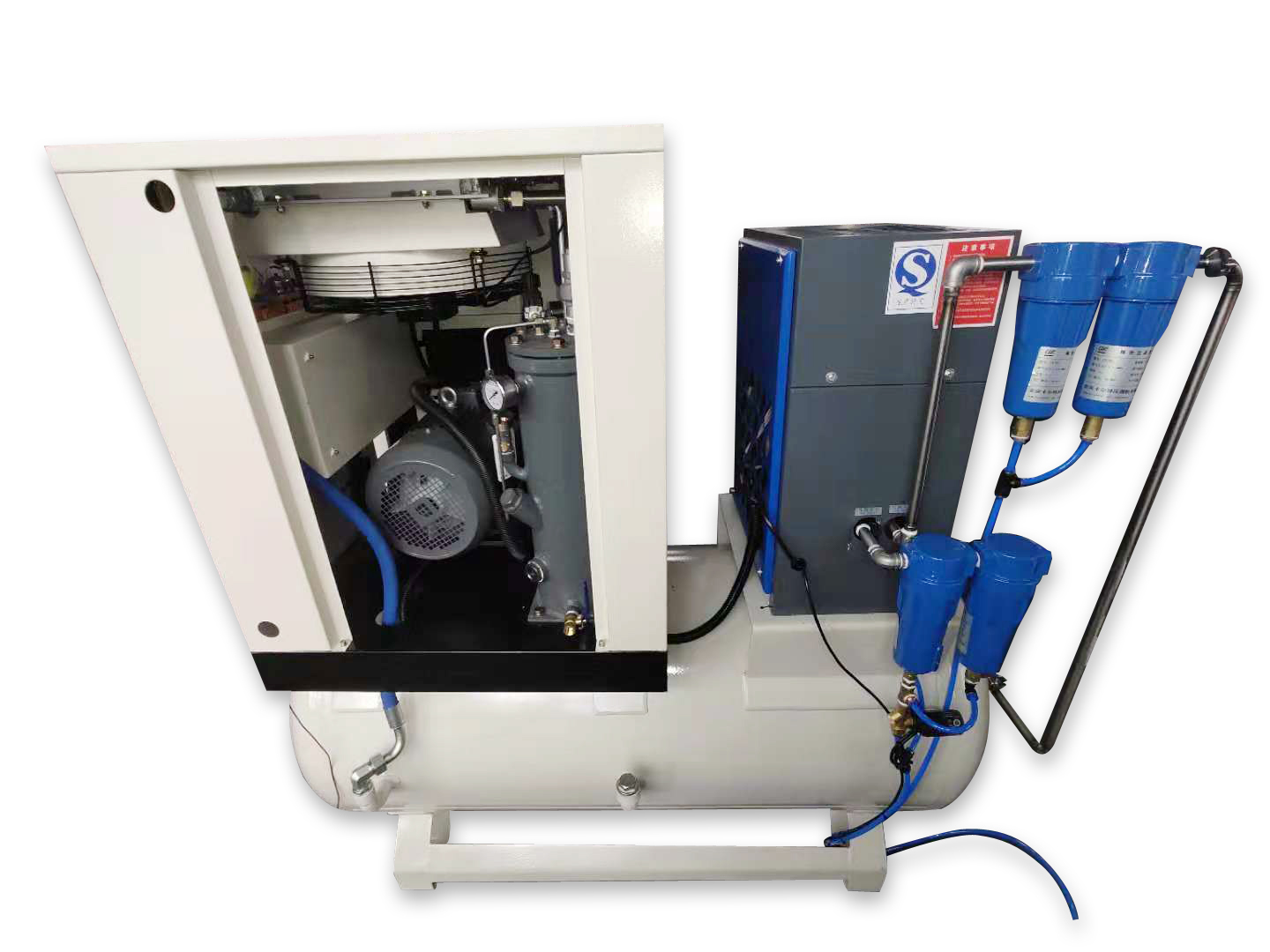 包含螺桿壓縮機,冷凍式干燥機、精密過濾器、儲氣罐等部件集于一體。